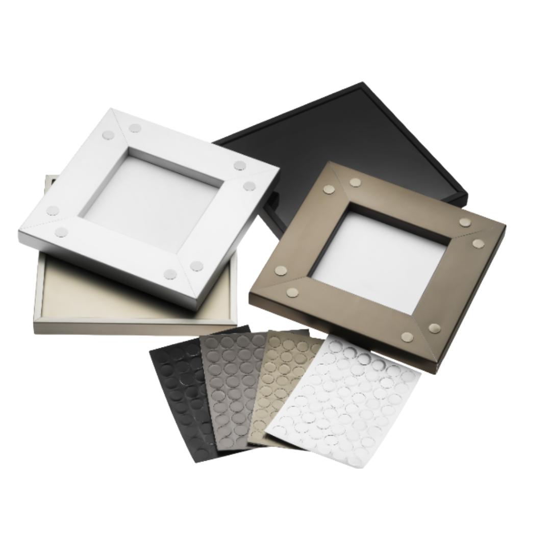 E você sai ganhando em 3 pontos cruciais: um custo mais baixo que os tapa-furos comuns de tampinha; uma estética mais sofisticada com o baixo relevo do adesivo; e a liberdade de criar os seus designs sem o risco de faltar um acabamento do mesmo nível para o seu produto.